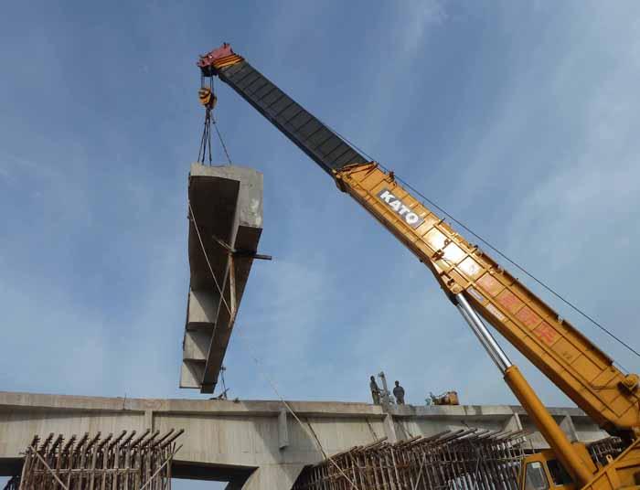 (6).运输和安装设备,如车辆、电缆起重机、架桥机和其他用于在整个跨度架设桥梁的施工机械。中铁有双悬臂架桥机、单梁架桥机和双梁架桥机三种。对于铁路桥梁,常用的是各种类型的滑动架桥架,小跨度公路梁也可以采用简单的