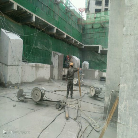 (1)、施工工艺:根据设计要求,必须对原结构混凝土墙体进行无振动切割,以免对原结构的破坏和干扰。针对这一要求,在切割施工中,使用水钻切割施工具有施工速度快、效率高、无振动、不会对整体建筑结构造成破坏等优点。