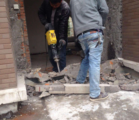 2.我们也可以用电锤,类似于冲击钻。使用这些工具,我们可以很快敲出水泥地面。