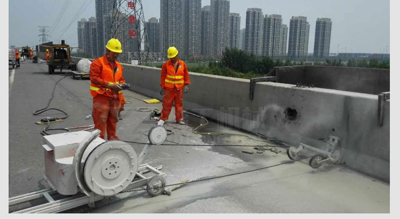[专业钻切设备]拥有国外进口和自主研发的专业混凝土切割设备:9台液压绳锯、5台液压墙锯、3台液压钻、50台电动钻、1台盘锯、1台环锯、6台电动墙锯。桥梁结构、公路结构、烟囱、建筑柱、钢筋混凝土墙、砖混结构墙、建筑梁等不同规格形状的建筑物、构筑物可无损切割拆除。