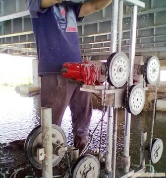 异形金刚石绳锯可根据客户的特殊要求制定,主要是加工金刚石锯片等锯切工具不能完成的锯切任务,一般是直径大或体积大的石材产品。