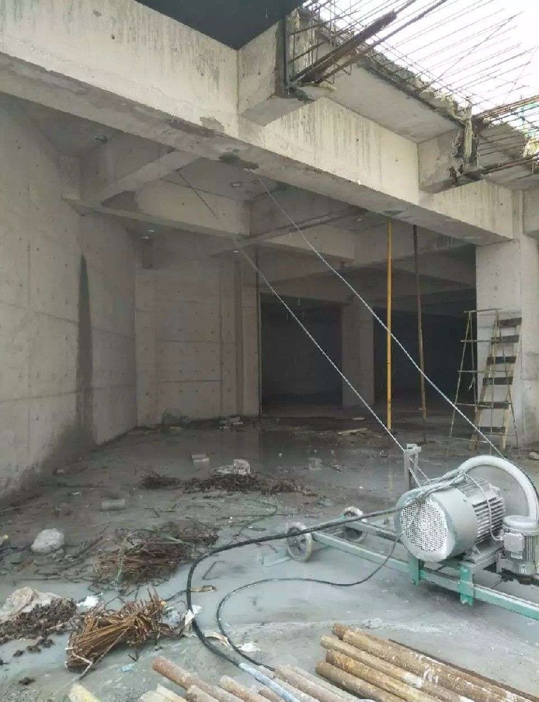 第二步,切割地板:使用专业拆除切割工具(墙锯、水钻切割机等)沿梁边缘和地板画红线方向切割,注意切割地板必须分块切割,手动移动或使用倒链吊装工具分割地板安全,沿红线方向切割地板到红线左侧,混凝土用电动工具破碎拆除剩余原地板钢筋,弯曲钢筋90度;