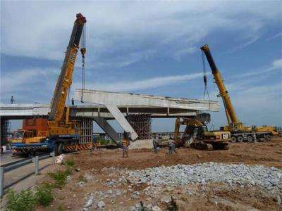 (6).运输和安装设备,如车辆、电缆起重机、架桥机和其他用于在整个跨度架设桥梁的施工机械。中铁有双悬臂架桥机、单梁架桥机和双梁架桥机三种。对于铁路桥梁,常用的是各种类型的滑动架桥架,小跨度公路梁也可以采用简单的