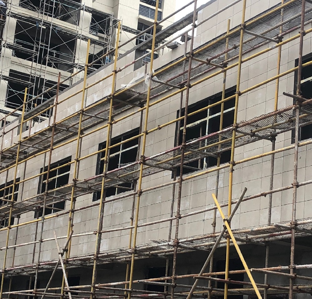 脚手架需要拆除外墙。因此,在拆除外墙之前,必须配置支架。支架必须按规格安装,检验合格后才能使用。