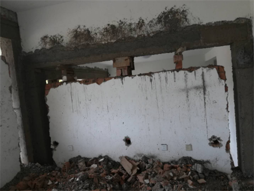 2.在敲墙的过程中,如果不考虑损失,我们可以选择用大锤在墙壁上敲一个1到1.5米的缺口,缺口的深度可以达到墙的底部。 然后成功地撞上墙后留下的豁口,并系上一根结实的绳子。几个人一起拉墙,很快就有一面墙倒了。如果考虑到成本,又不想损失太多,只能先把墙皮去掉,然后一层一层的剥,但是这种方法比较慢。