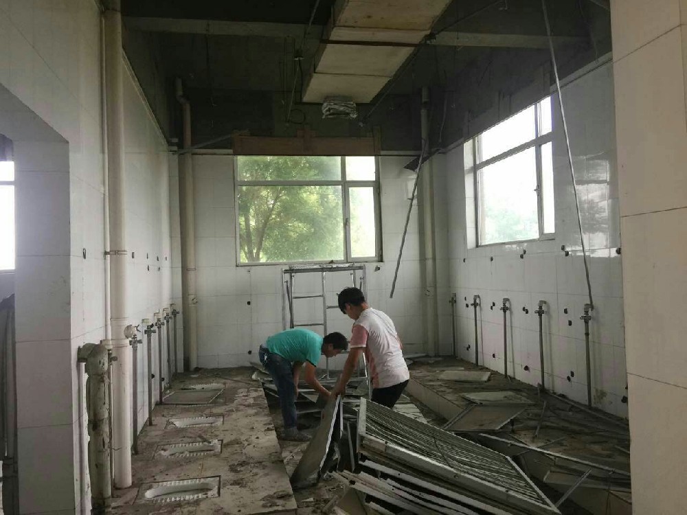 洗浴专用工具的拆装;先拆装洗浴用品,再拆吊顶。根据施工队的施工习惯,可以在所有墙壁上敲砖前统一拆除卫浴产品,也可以与敲砖交叉进行。拆卸卫浴产品时,一定要提前与房主沟通。如果必须保存和使用卫浴产品,在拆装时应注意不要损坏卫浴产品。并非所有沐浴产品都必须立即拆卸。马桶的拆卸和组装留待进行。项目施工期间,可以用木板等材料保护马桶,防止其被炸药砸坏。