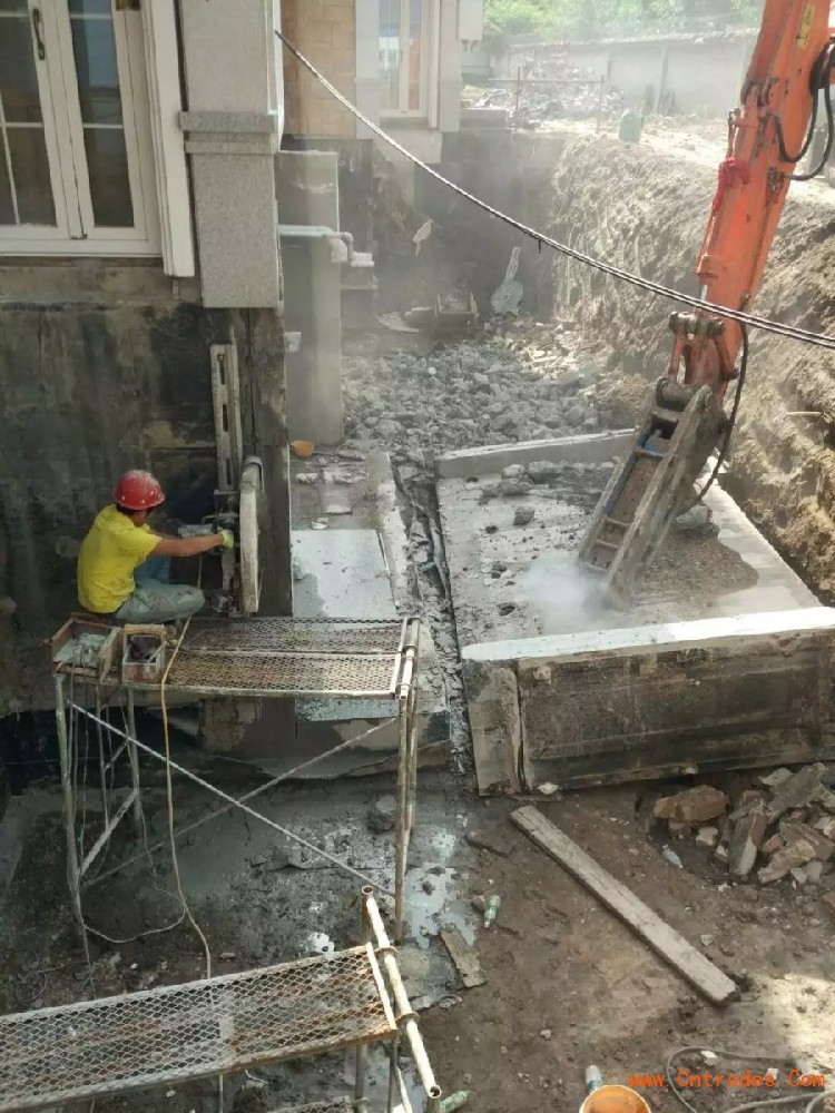 确定拆除位置→设置楼板底部第二步和次梁的支撑架第一步楼板开孔→→→定位线探孔→→→→钻孔清除第一道水钻施工渣并清孔→根据探孔准确放置钻孔线→楼板混凝土钻孔一步及楼板运孔第二步施工方法:→第三步设置临时围栏,在楼板底部竖立支撑架→破坏楼板混凝土→拆除楼板底部支撑架,重复上述步骤循环直到所有的台阶都被移除。