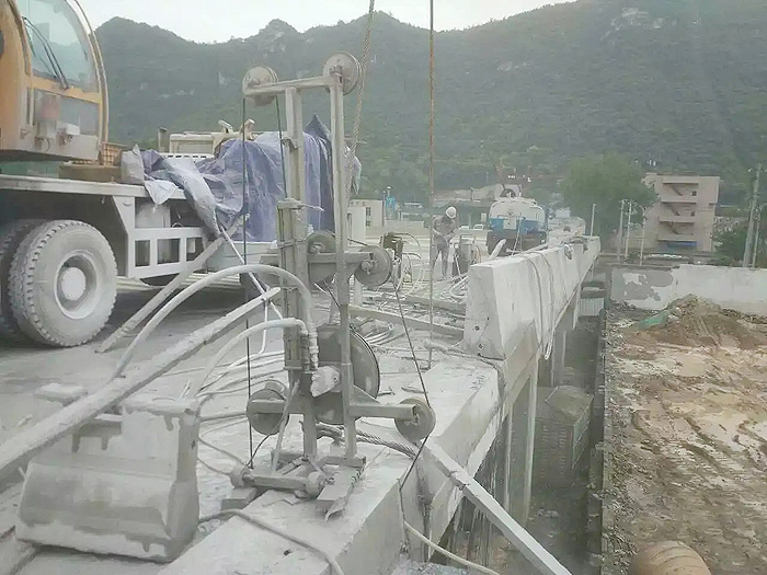 在桥墩表面涂抹适量的冷却剂和切割剂,然后使用绳锯切割设备对桥墩进行初步切割。初步切割的目的是将桥墩分割成较小的块体,以便后续的精细切割。